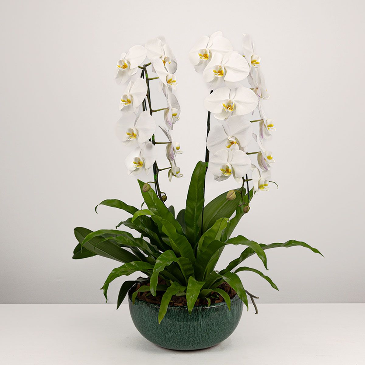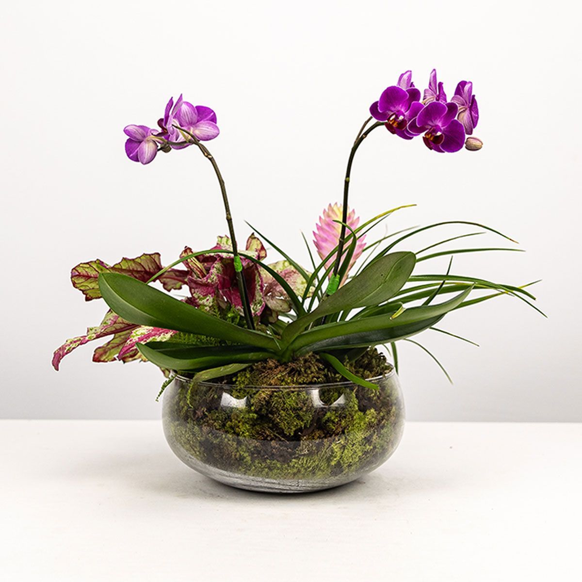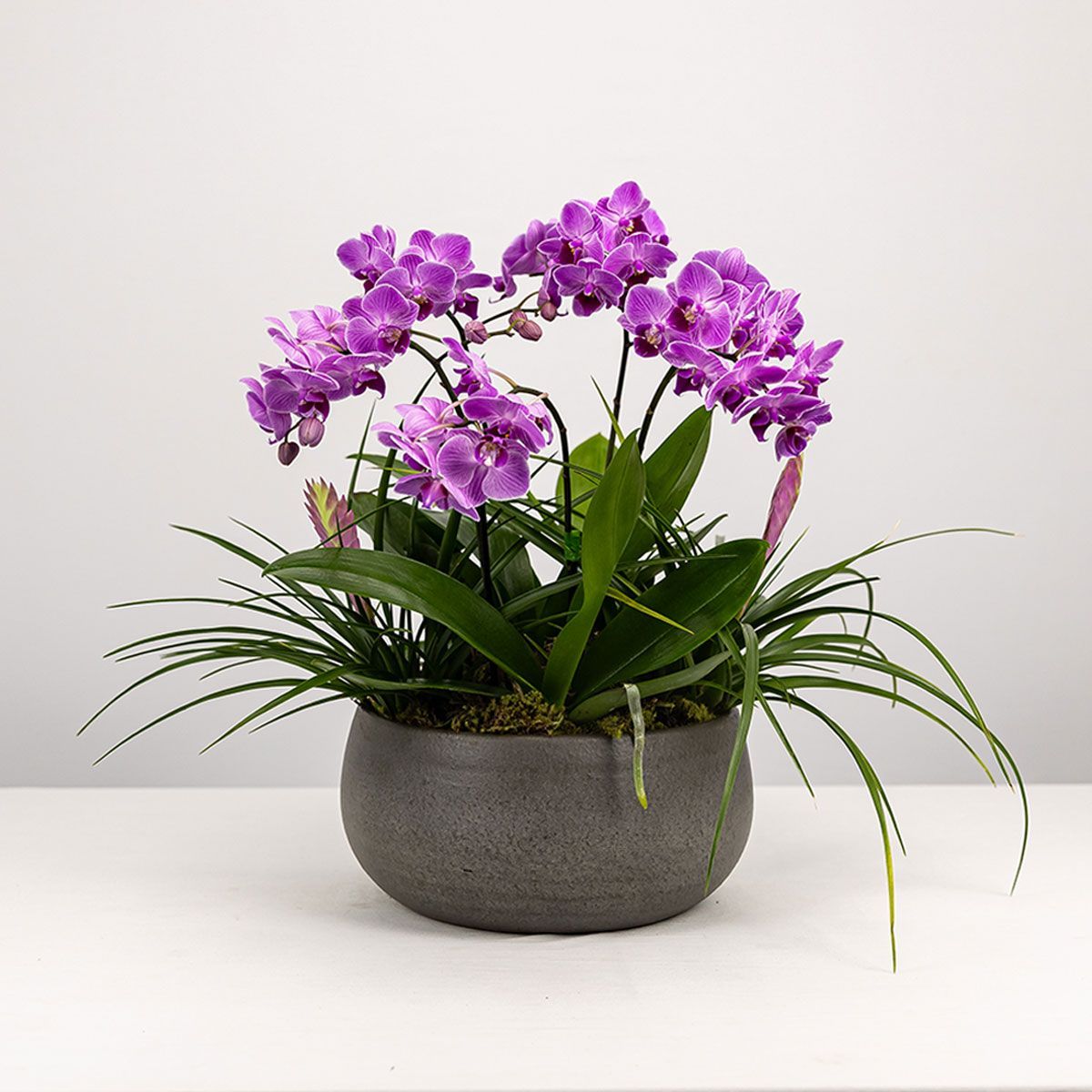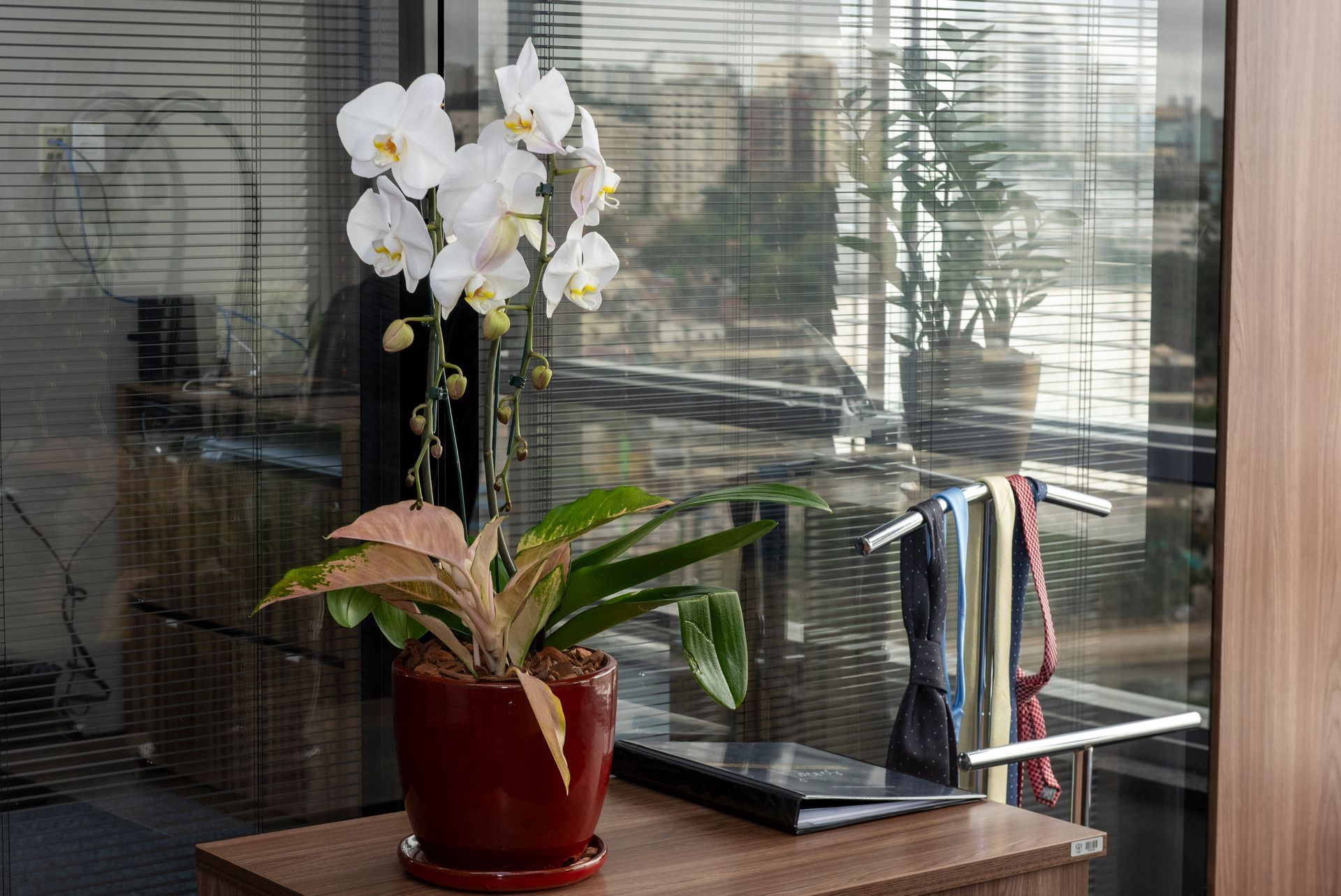 Orquídeas, bromélias e plantas em vasos, perfeitos para manter o ambiente elegante mensalmente com pouca manutenção.